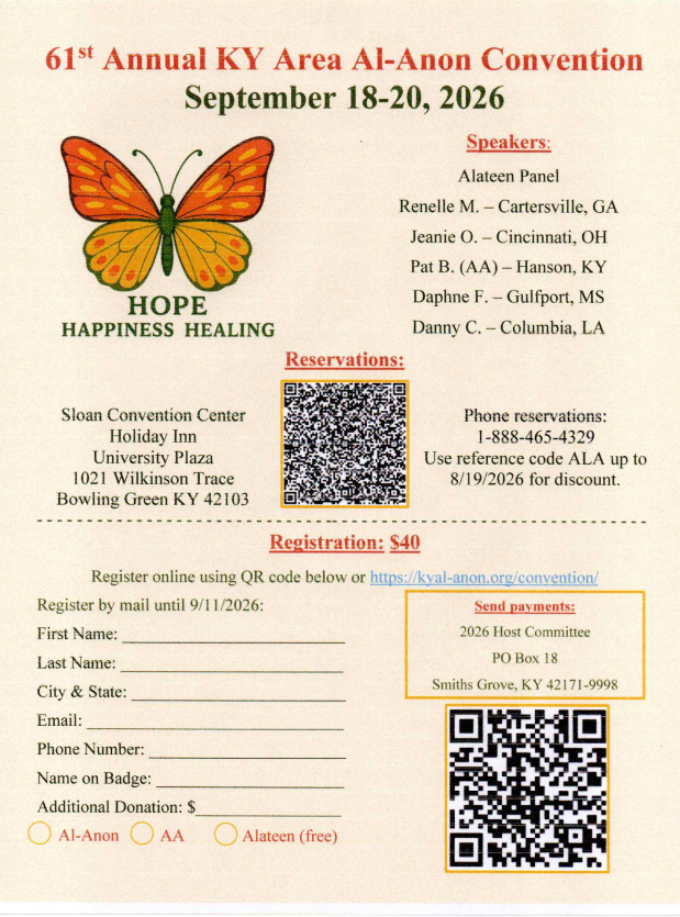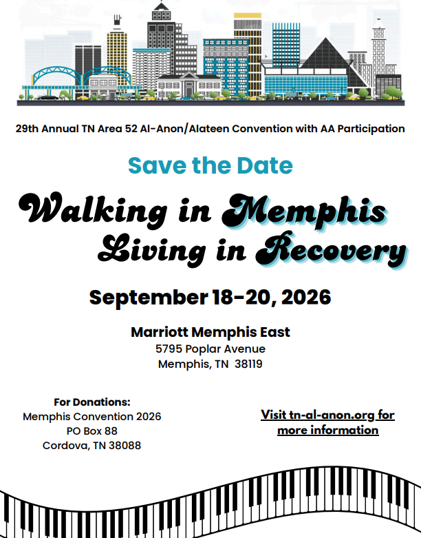 The 29th Annual Tennessee Area 52 Al-Anon/Alateen Convention with AA Welcome/Participation Walking in Memphis, Living in Recovery Marriott Memphis East 5795 Poplar
